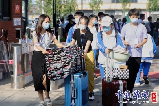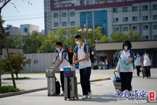 图为雄安新区安新县石家庄二中雄安校区河北安新中学返校现场。中国雄安官网刘东尧 摄“我们是分学段、分年级、分班级陆续返校,今天是高三年级约1500名学生返校,明天是高二年级,9月6日高一返校。”9月1日上午7点半,石家庄二中雄安校区河北安新中学副校长王凯正在学校门口引导学生有序进入校园。为了帮助学生运送行李,学校的老师租用电动车和超市购物车,帮助学生把行李搬运到宿舍楼前。“我们的食堂都提前安排好了菜品和座次,保证学生们能吃上可口的饭菜。”王凯说,上午,高三年级的学生先整理宿舍和教室,下午,各班级会召开开学后第一个班会。