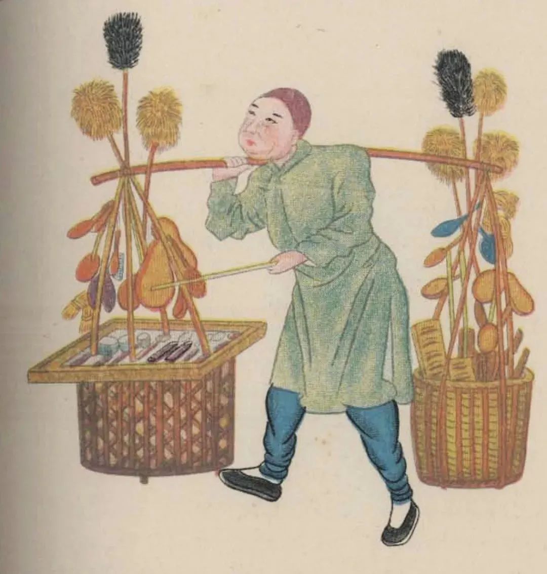 蘸糖葫芦的,拿起一串山里红伸到锅里,蘸一下,然后再啪地往石板上一摔,一拉。手上忙着,嘴里也不能闲着,必须得吆喝这么一句:“哎,冰糖葫芦,刚蘸的啊!”