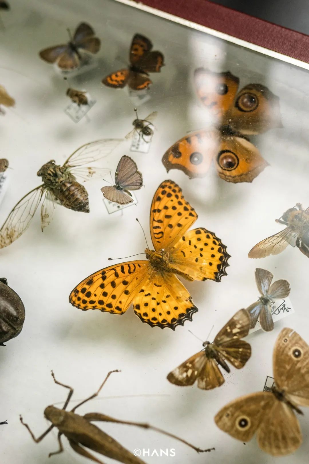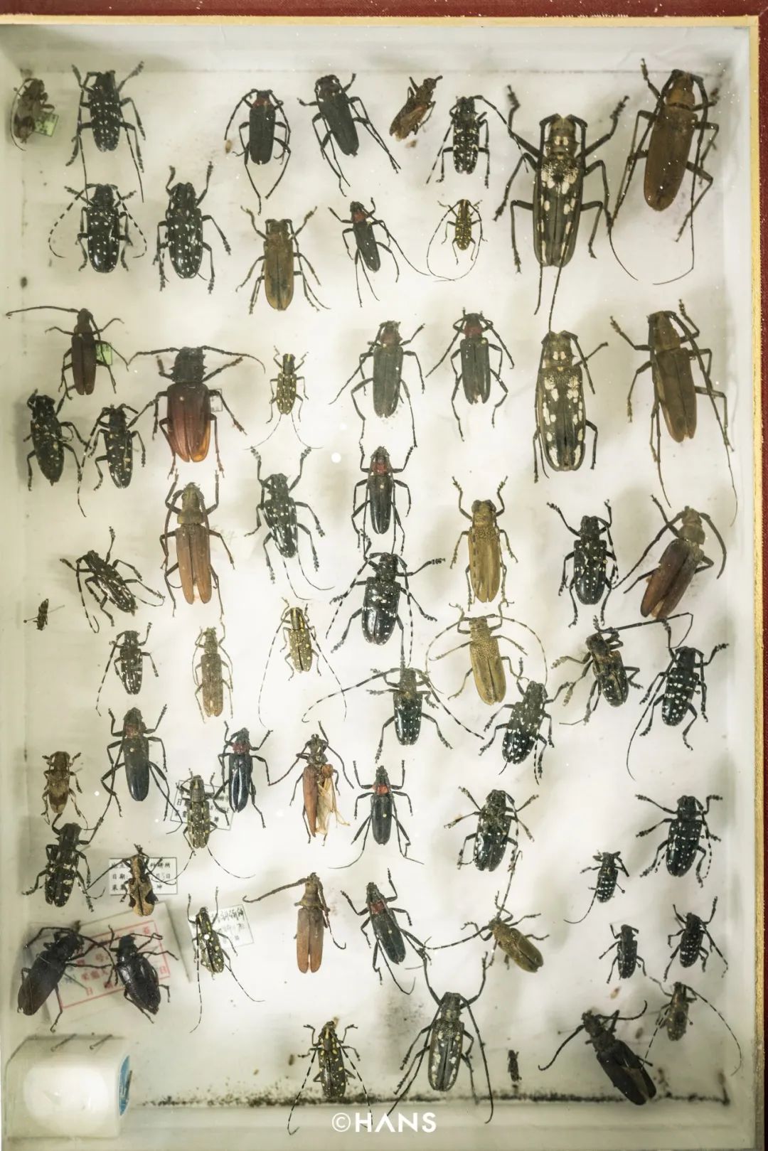 他经常去原始森林,比如神农架,标本室里摆满他收集的蝴蝶、甲虫、瓢虫、蛾子……