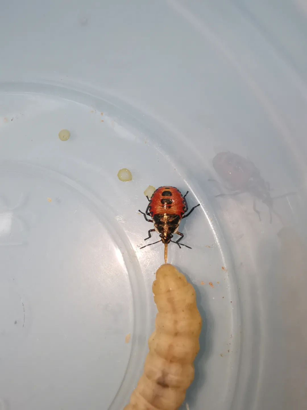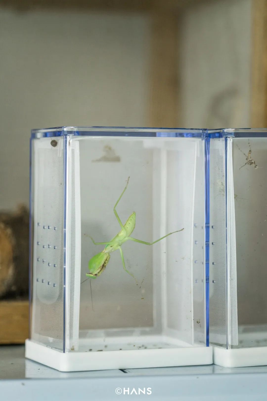 重阳木斑蛾组胜出的是蠋蝽,打屁虫的一种,培育室里那气味……我粗略参观一下就出来了。董立坤拍摄。董立坤和昆虫打交道十多年,产生了奇妙羁绊,做完研究,吃害虫考试不及格的“差生”都被他养成宠物,放在研究室、办公室的各个角落。