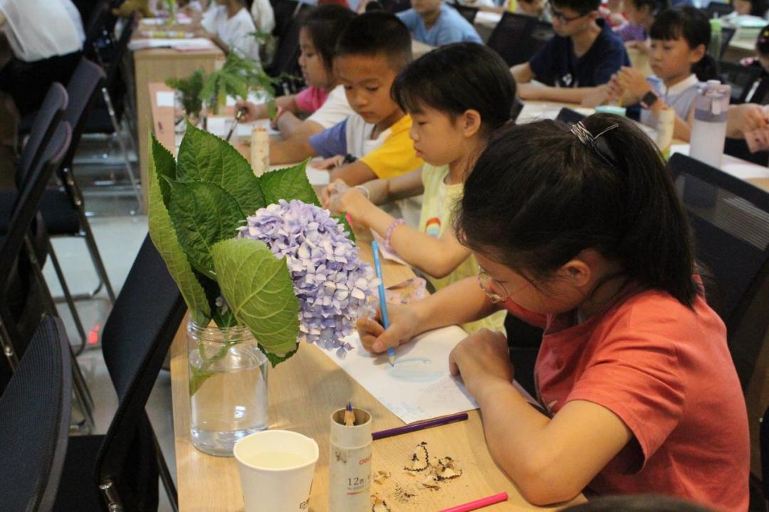 美人蕉、再力花、兰花……种类繁多的花木摆在课桌上,等待孩子们的辨识。7月22日,白鹭府社区联合洋湖国家湿地公园沃野自然学校,开展“环境保护进社区”自然笔记公益课堂,带孩子进行一场“自然之旅”。