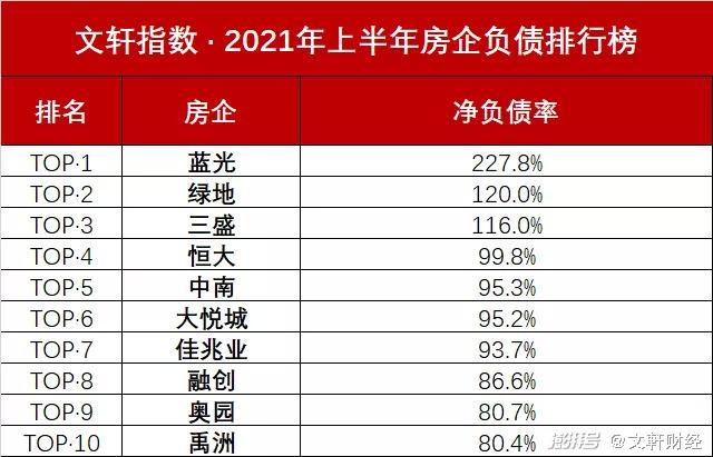 40家重点房企样本中,仅蓝光、绿地、三盛3家的净负债率“超标”,其余房企净负债率均在“安全线”以内。