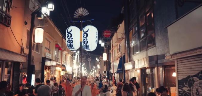 傍晚他们一起参加“祭り”(祭典活动)的地点是在东京人气人高的高円寺商店街,这是一条拥有着多元文化的街道,具有年轻潮流又融合了烟火气。每年在夏季举行的祭典活动都会在高円寺商店街举办,游客跟隆重着装的当地居民都会一同狂欢。