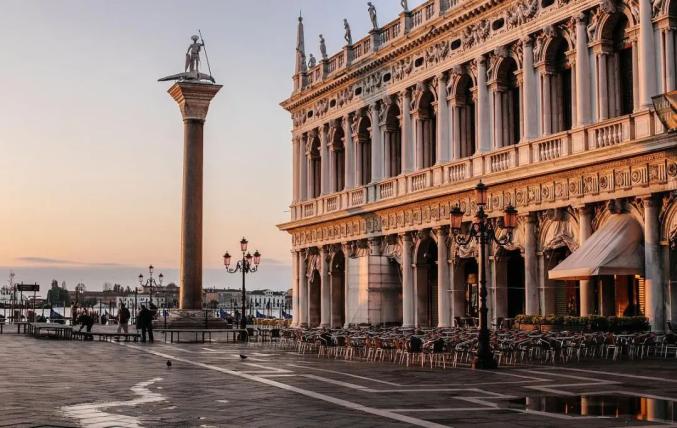 侧面的圣马可图书馆为16世纪的建筑,它被认为是文艺复兴建筑中最壮丽的作品。