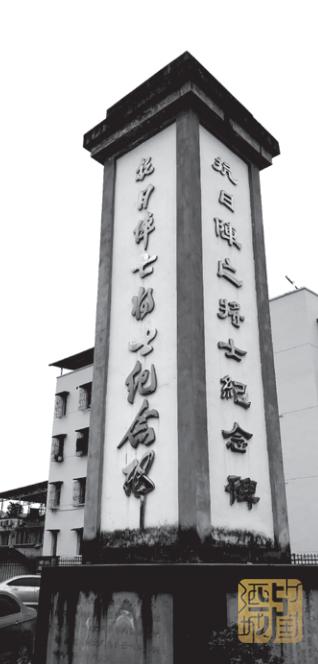 1940年,护国镇民众为抗战将士立碑,区长袁雨金题碑名。抗日阵亡将士纪念碑立于护国万寿宫庙门口豆豆市中。