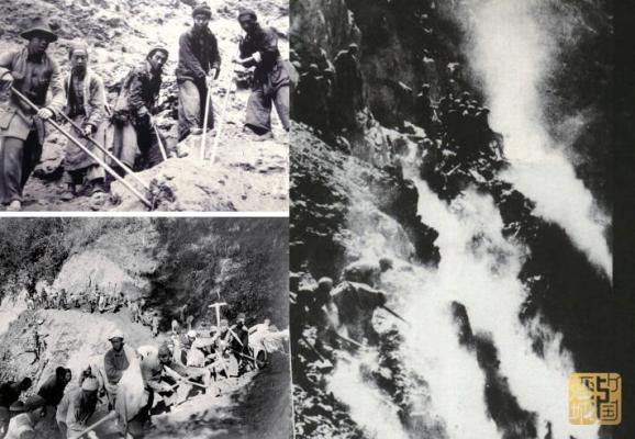 △ 1938年2月至1939年12月,泸州10万民工用生命与汗水参与修筑川滇公路。该公路后来成为抗战期间中国接受国际援助和华侨捐献物资的唯一运输通道。图为民工修建川滇公路。