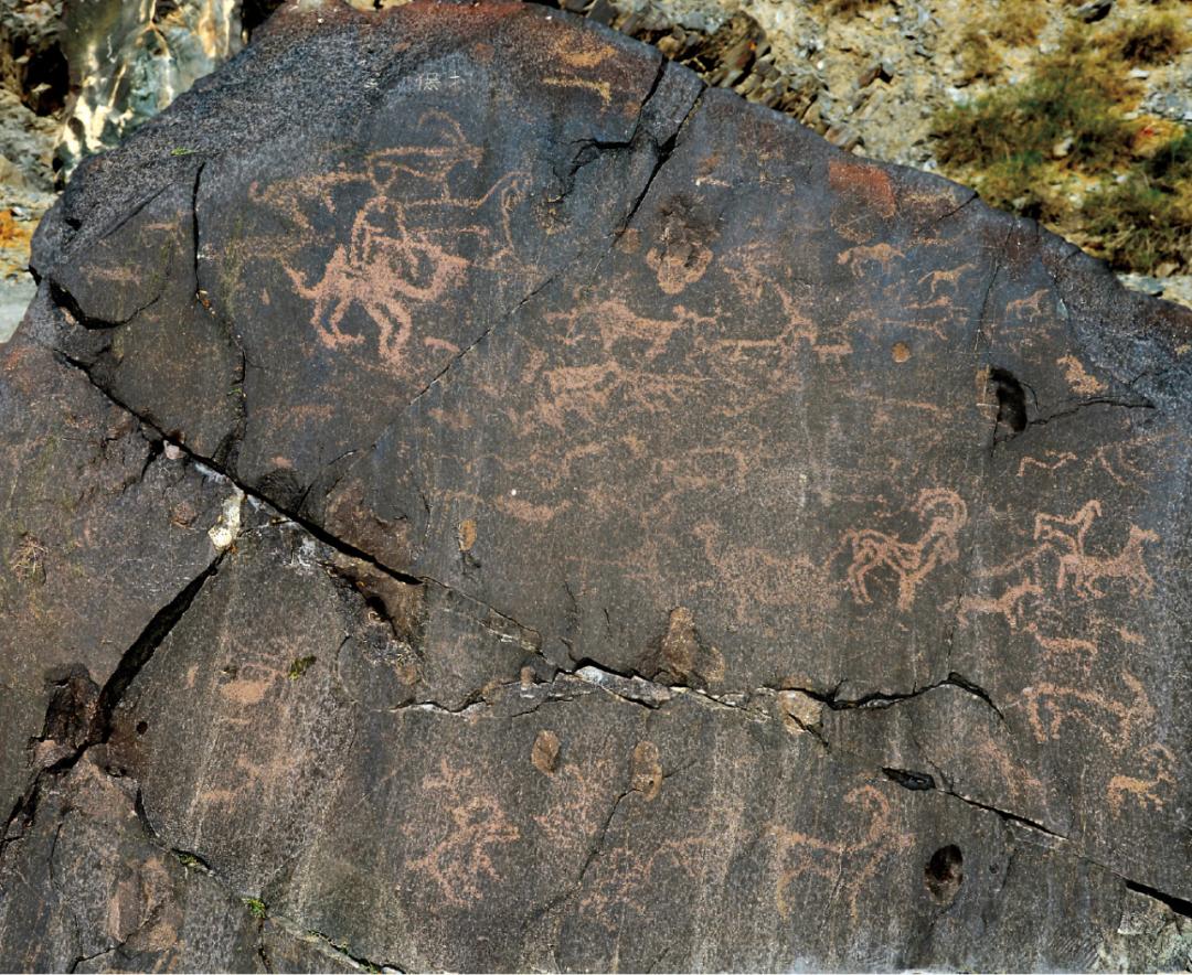 黑山岩画黑山岩画主要分布在黑山石关峡峡谷、交河沟沟口、红柳沟、四道股形沟、磨子沟、蕉蒿沟6处沟底两侧山崖上。嘉峪关黑山岩画是中国北方岩画的典型代表,具有明显的地域特点和很强的代表性。黑山岩画中反映先民原始宗教的有动物崇拜、生殖崇拜、图腾崇拜。黑山岩画反映的时限跨度大,时空关系复杂;涉及部族较多,晚期作品有明显的宗教色彩。它涉及社会学、历史学、考古学、美学、宗教学、民族学、语言学等多种学科,具有很高的研究价值。