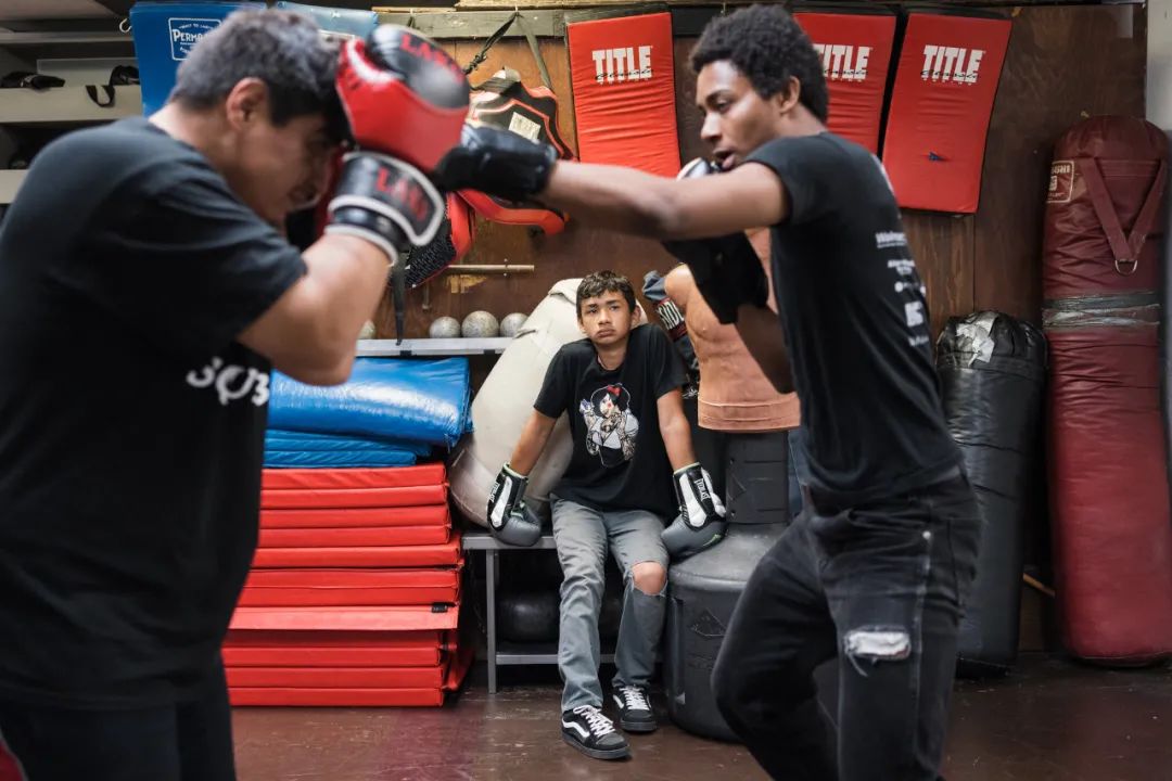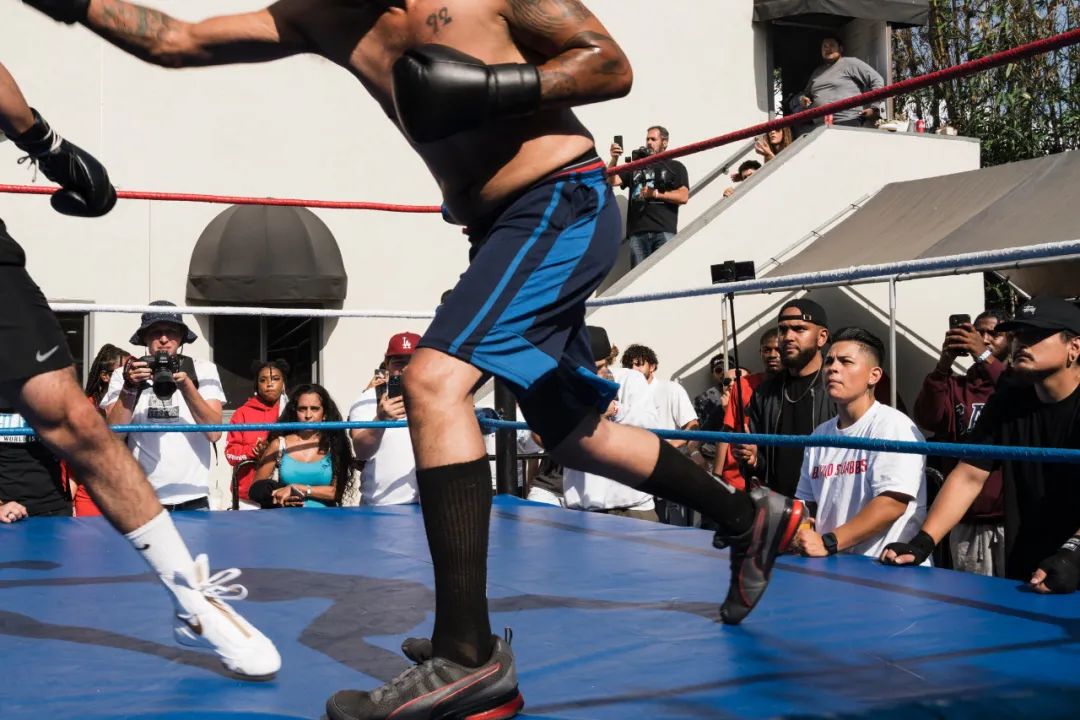 拳击场清空后,D.J.播放了嘻哈音乐,两名拳击手为下一场比赛进行了热身。