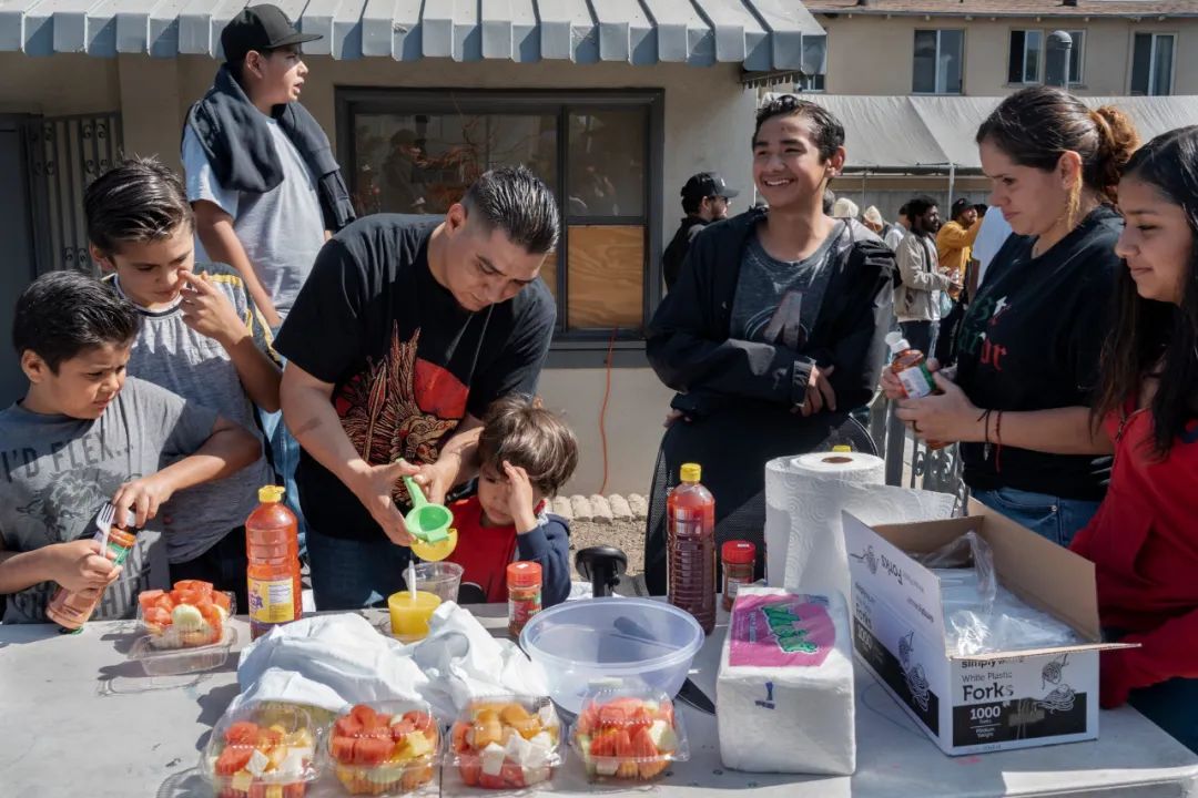 在阵亡将士纪念日的周末(五月的最后一个周一),赫克托·埃雷拉和他的家人乘坐两辆汽车来到后院争霸。埃雷拉14岁、11岁、9岁和3岁的儿子,和他13岁的女儿一个接一个地从车里走出来,手里拿着装着水果和塔吉调料(洒在蔬菜水果上的墨西哥辣调料)的冷藏箱。他的小女儿(6岁和3个月)与其他家庭成员呆在其他地方。