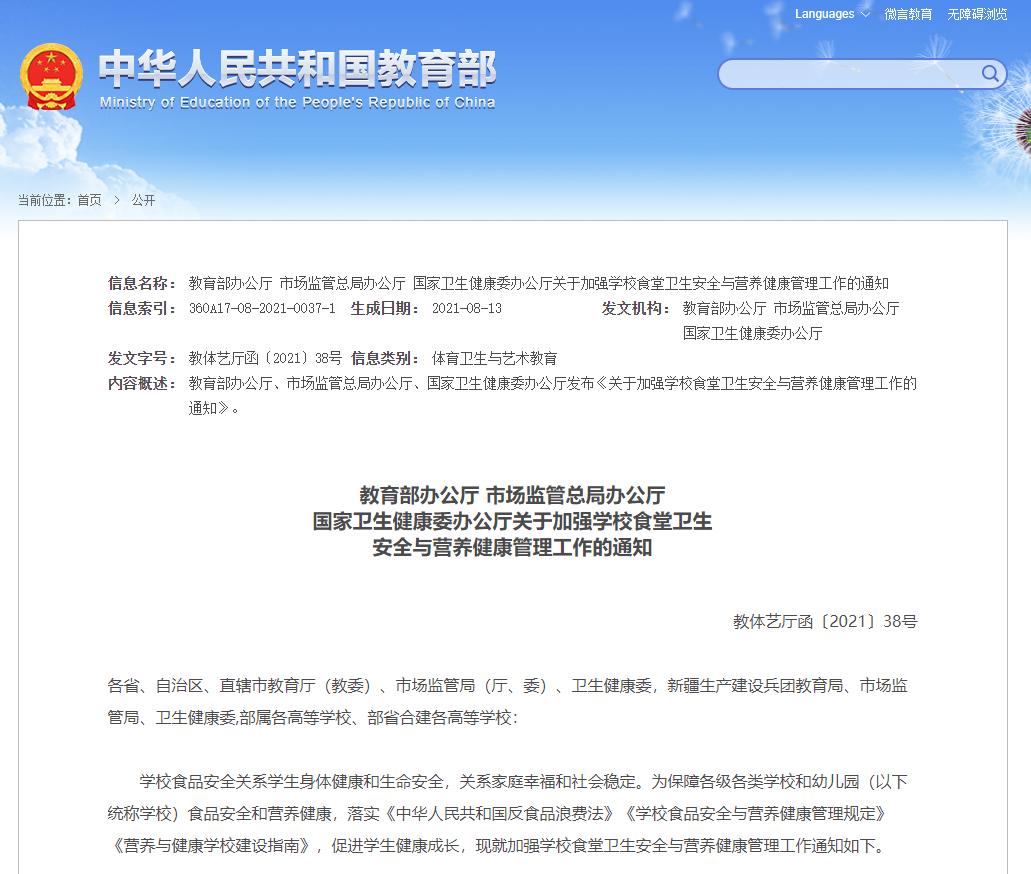 教育部、市场监管总局、国家卫生健康委日前印发通知,加强学校食堂卫生、安全与营养健康管理。