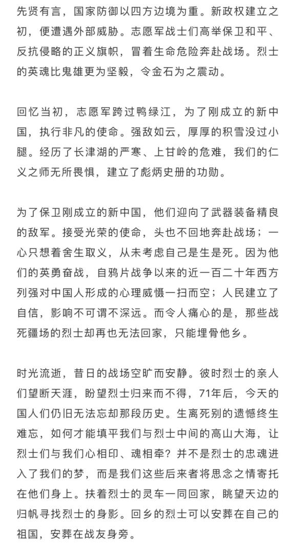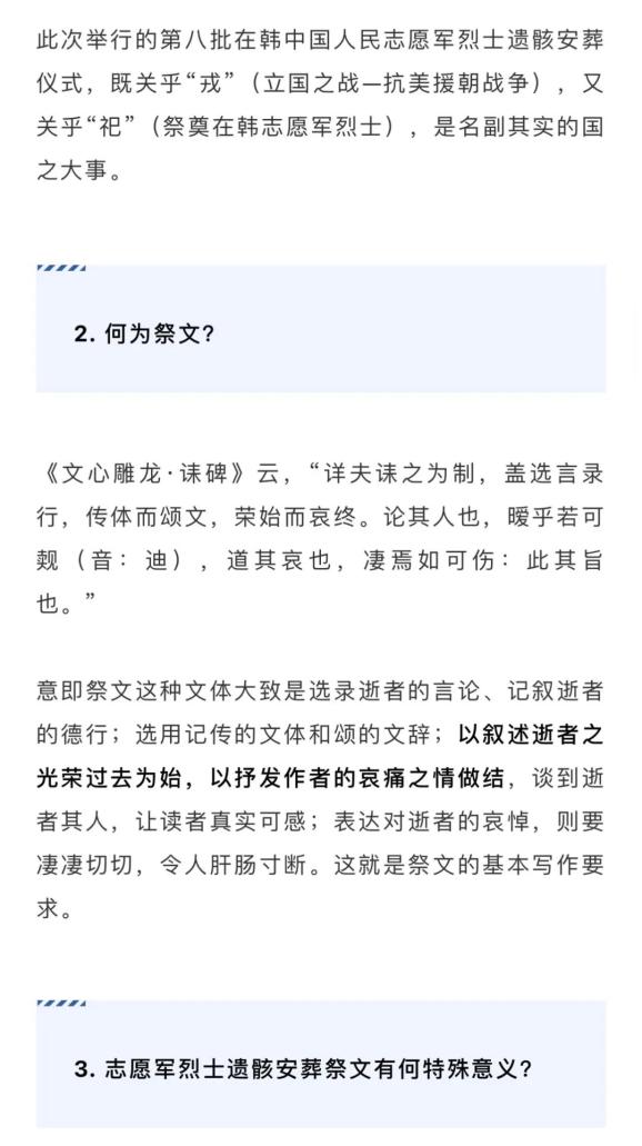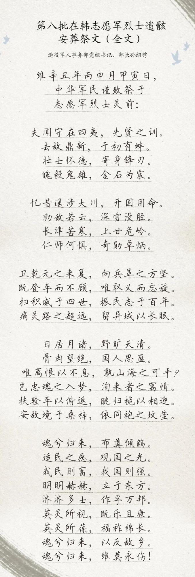 原标题:《解读志愿军烈士遗骸安葬祭文的背后深意》