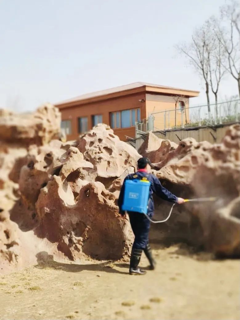 沧州动物园定期开展全园大消杀,持续加强动物馆舍、饲料配送间、园区、卫生间等区域的消杀、消毒力度,确保游客、工作人员和动物安全。