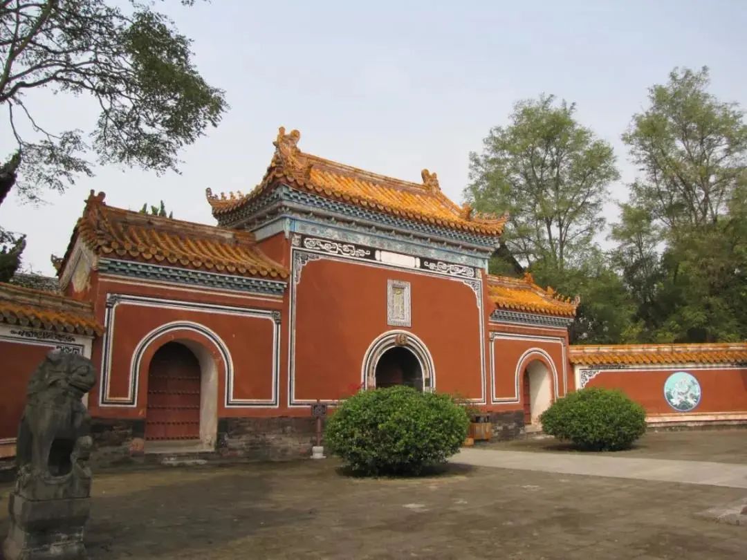 三元门走进关陵,雄伟的宫墙相连,皆为红砖黄瓦,富丽堂皇。