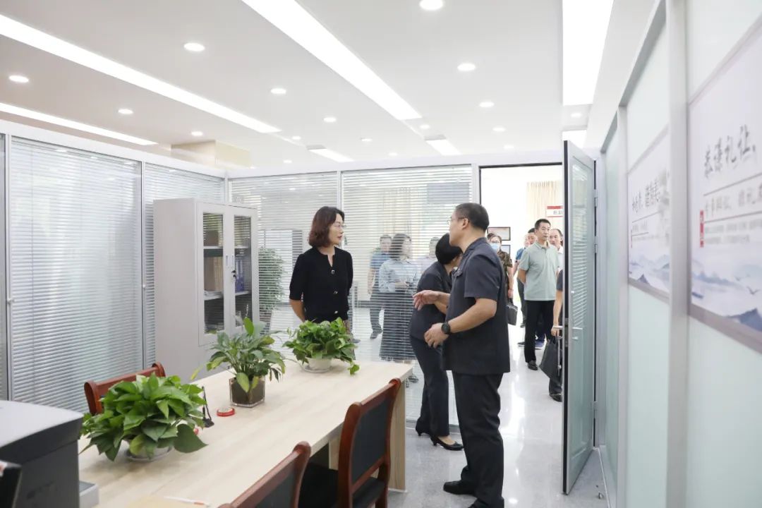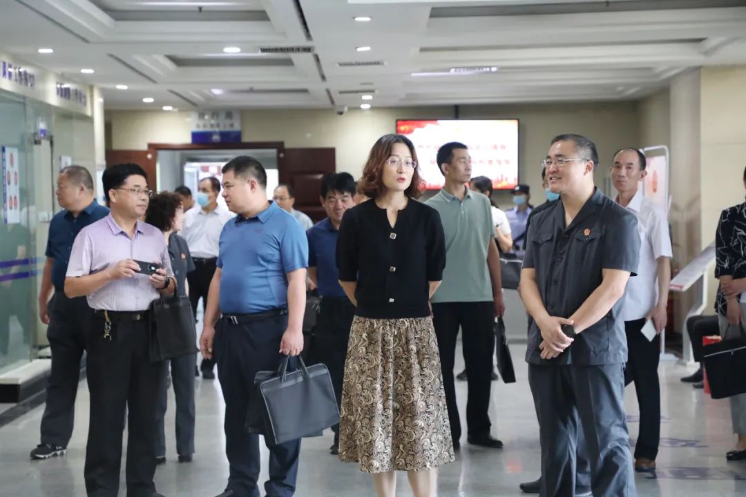宋敬华一行实地查看了信访接待室、安检通道、诉前调解室、乡村振兴诉讼服务云平台及诉讼服务中心各功能区,详细了解了诉讼服务中心升级改造、诉源治理、诉调对接等情况,工作人员进行了现场汇报解答。