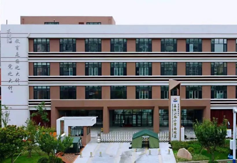 嘉陵江路小学南校区占地11667平方米,建筑面积13503平方米,运动场地4706平方米。主体教学楼采用“U”型设计,西侧二楼连接操场,中间中空形成天井空间,增加教学楼整体采光。主体功能为教学用房,包括普通教室、功能室及辅助用房、教师及行政办公室、配套用房等,设有音乐教室、舞蹈教室、美术教室、吊装式科学探究室、计算机教室、心理活动室、创客之家、录播教室等。所有教室及功能室全部安装海信触摸交互式电子白板、高清LED显示器、ABS一体成型课桌椅、书包柜等高科技设备。易通路小学