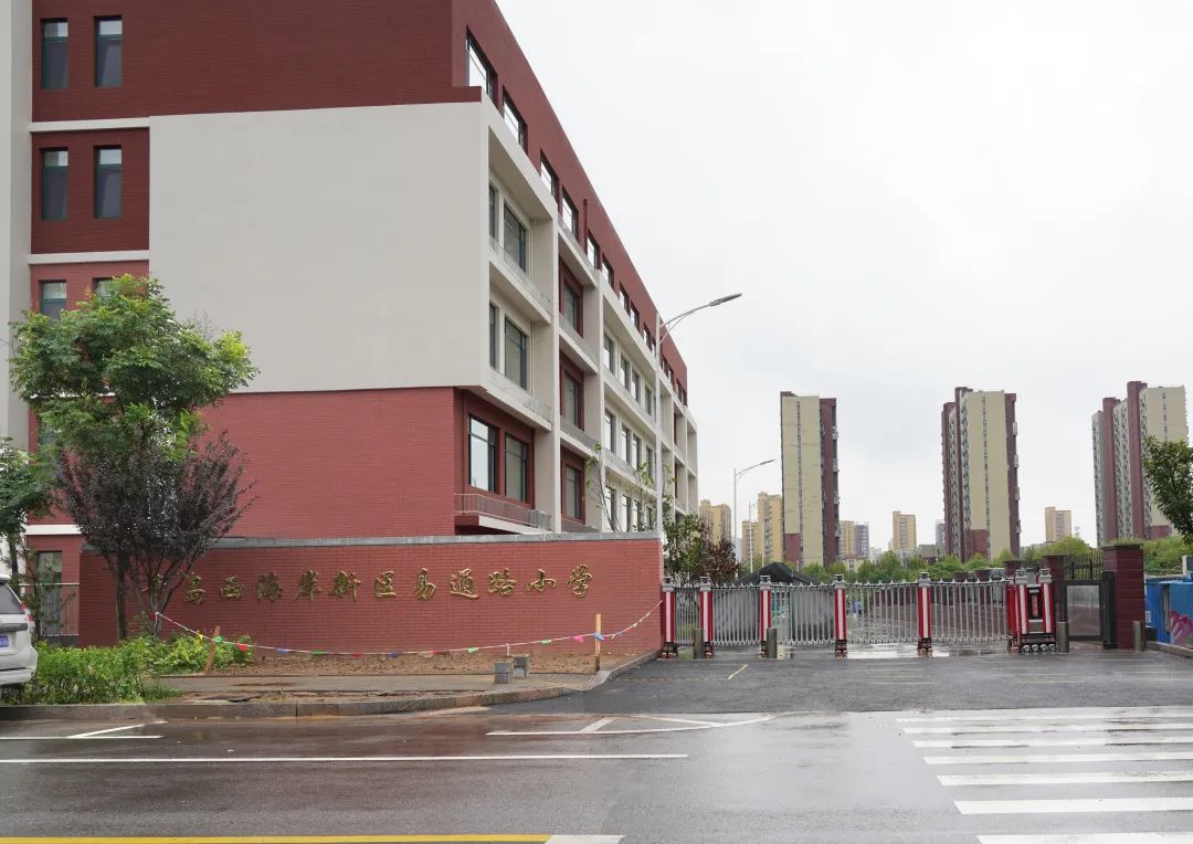 青岛西海岸新区易通路小学位于隐珠街道办事处易通路北端,学校占地50亩,建筑面积15800多平方,能容纳36个教学班,2015年8月投入使用。2020年10月,筹资人民币3300万元,开工扩建易通路小学的教学楼(含地下车库)6900平方米,包括21个普通教室,3个机动教室,能满足24个教学班使用。教学楼内设部分功能教室,配有完善的供电设备、取暖配套、消防配套,设计了半地下停车位并实现人车分流。胶河小学