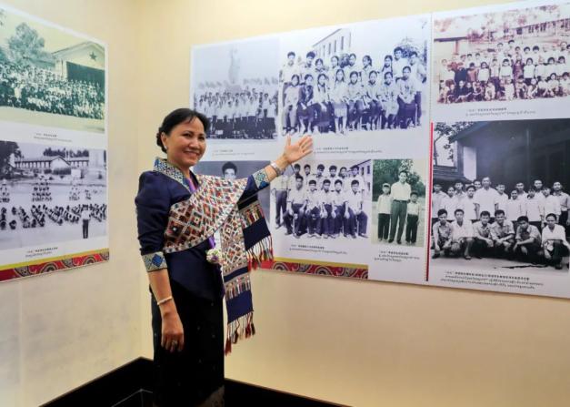 2019年9月21日,前来广西出席“2019中国-东盟妇女创业创新论坛”的老挝妇联主席因拉万•乔本潘,在南宁回访了她儿时母校老挝“六七”学校的旧址,当在墙上的一组黑白合影照片中找到自己的身影时,她高兴地连声说到。