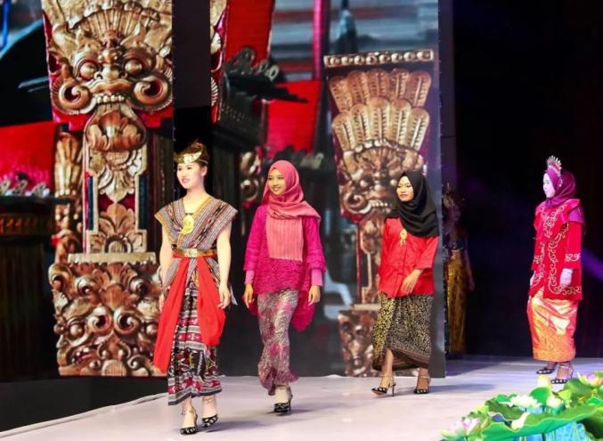 ▲2018年,在柳州举办的“绣·爱”——民族服饰文化汇演活动中,来自印尼、缅甸的留学生展示民族服饰