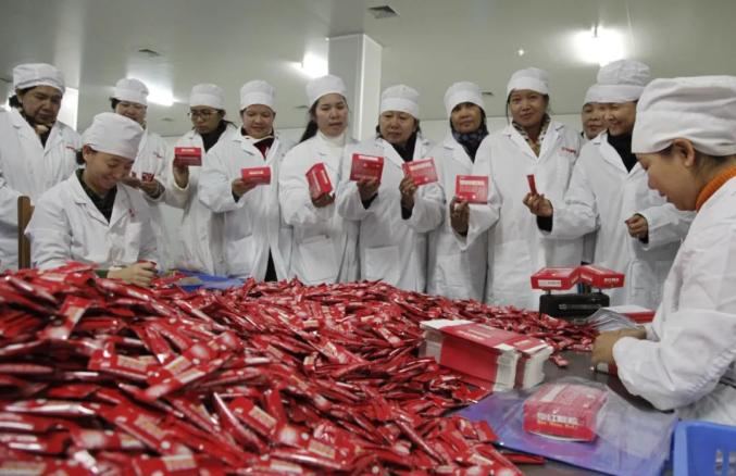 ▲2014年,来自柬埔寨的嘉宾参观花红药业