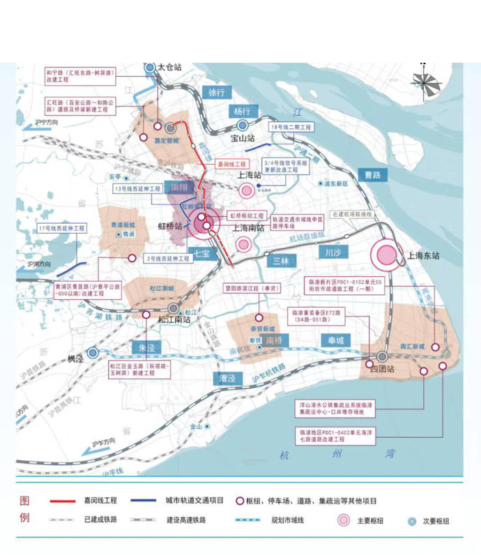 这其中,上海东站的车场规模按照14台30线进行规划控制,规划接入沪苏通铁路(衔接南北沿江铁路)、沪乍杭铁路,通过市域线网络转换,接入沪苏湖铁路、沪杭城际并衔接沪宁、沪杭通道。同时,规划预留沪舟甬铁路通道的接入方式。