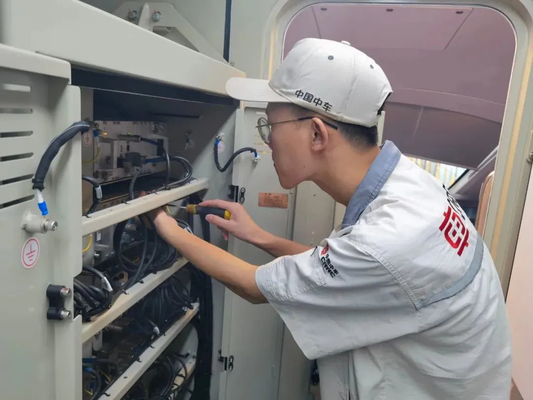 ▲大连电牵服务人员正在进行车辆整备工作网络控制系统