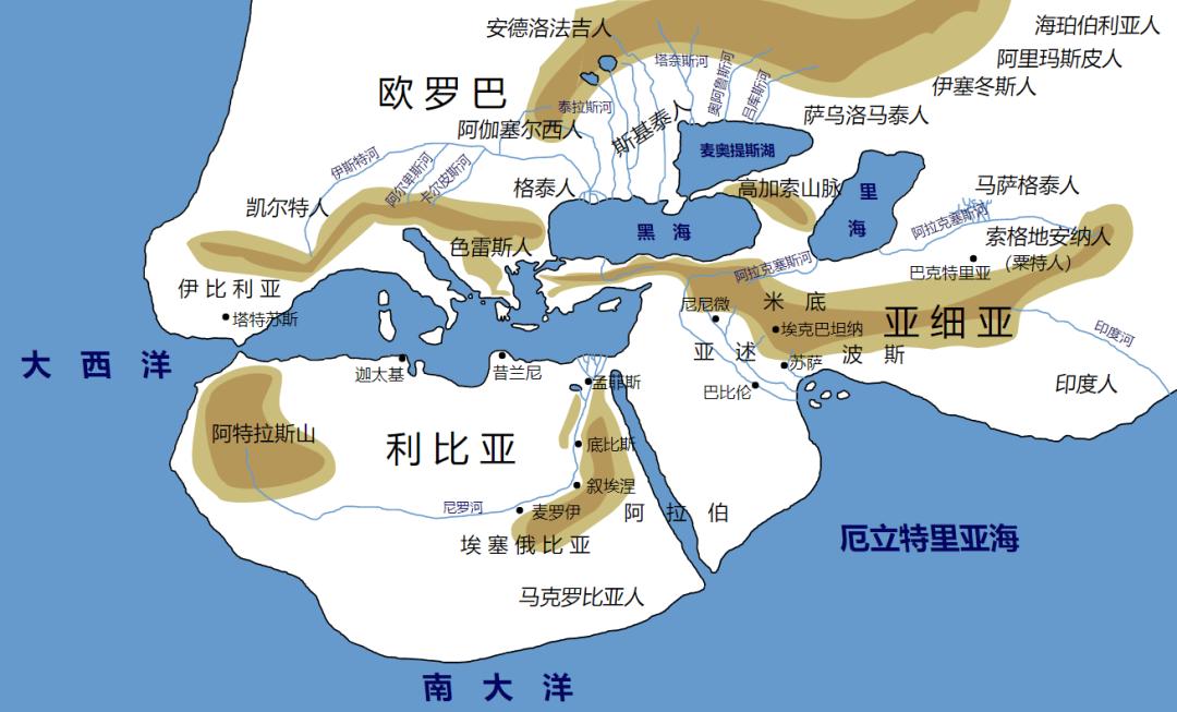 希罗多德在《历史》中所描写的世界模样。/wiki视野广阔的整体史观也让希罗多德的作品有着超越性。从《历史》整本书来看,希罗多德的视野是极为广阔的,从他的家乡卡里亚到美索不达米亚,从波斯帝国腹地到印度西北部,从尼罗河流域到阿拉伯半岛,再到欧亚草原地带,从意大利半岛到直布罗陀海峡,从埃及、亚述、巴比伦、腓尼基到吕底亚、米底、波斯、印度、斯基泰、色雷斯、马其顿,可以说,他的视野已经覆盖了当时希腊人所了解的整个东方世界和整个地中海世界。