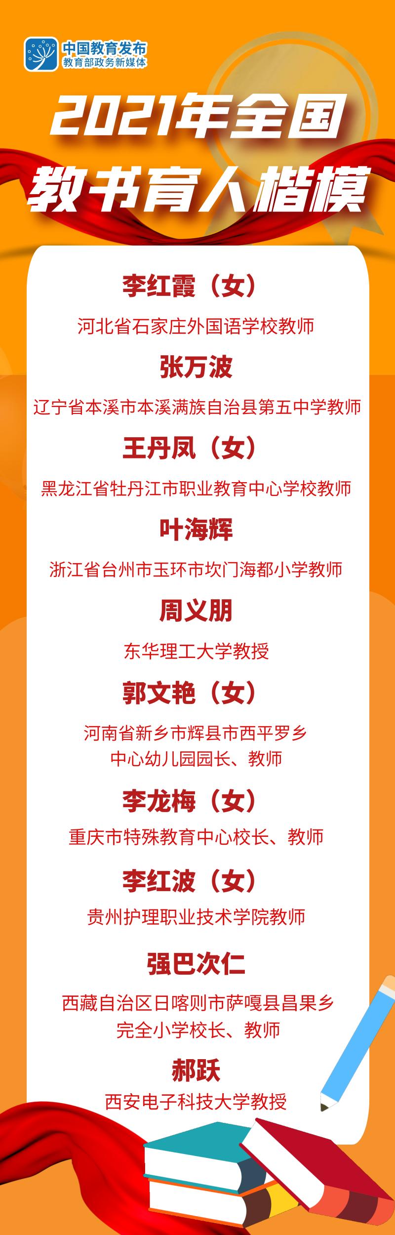2021年全国教书育人楷模,一起来看他们的故事↓↓↓