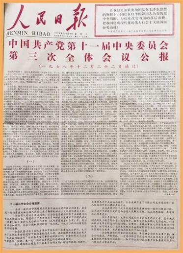 1978年12月24日,《人民日报》第一版刊发党的十一届三中全会公报。资料照片公报明确表示:“把全党工作的着重点和全国人民的注意力转移到社会主义现代化建设上来”“在自力更生的基础上积极发展同世界各国平等互利的经济合作”“根据党的历史的经验教训,全会决定健全党的民主集中制,健全党规党法,严肃党纪”……