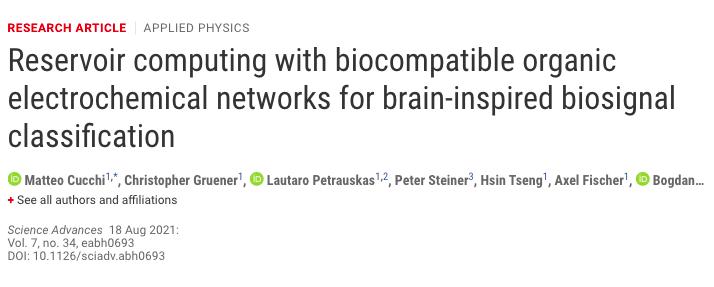 论文题目:Reservoir computing with biocompatible organic electrochemical networks for brain-inspired biosignal classification