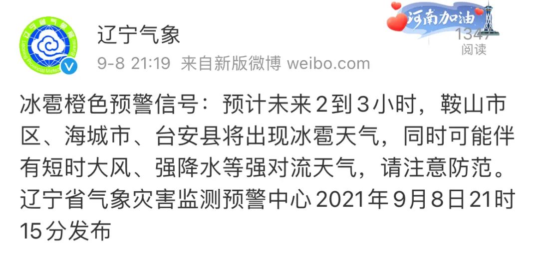 据@辽宁气象2021年9月8日14时至9月8日23时,