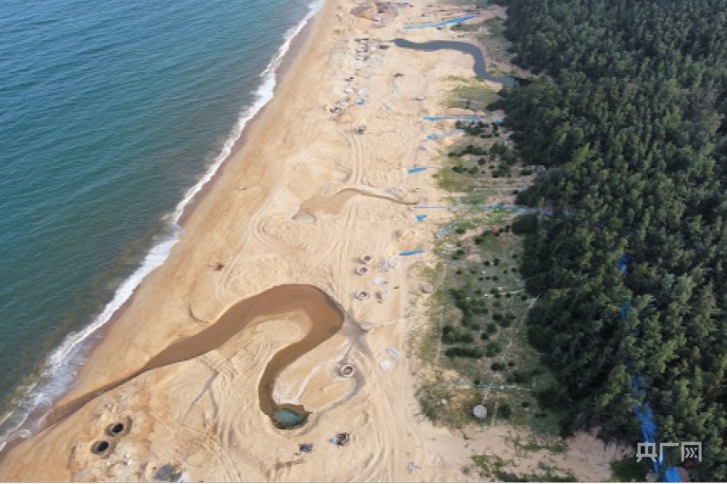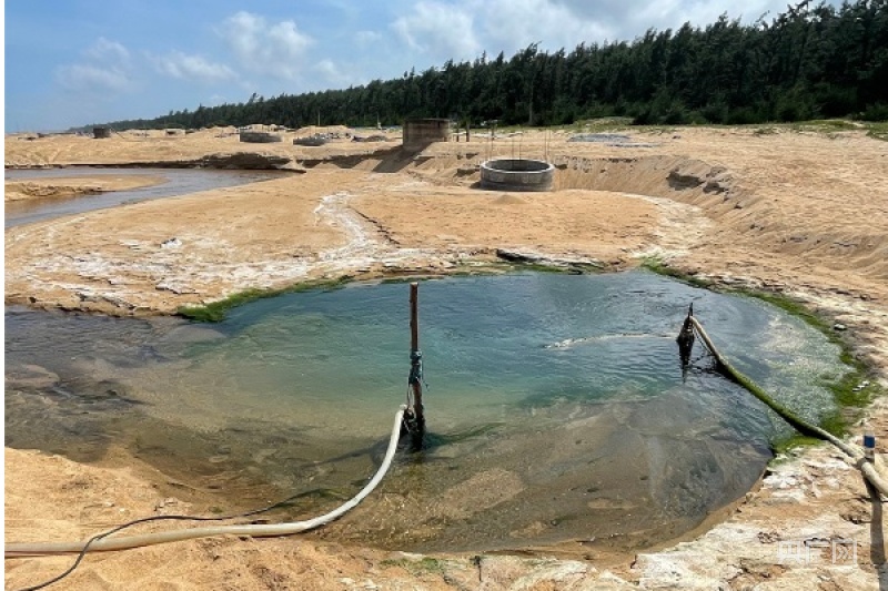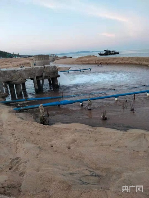 海滩上随处可见抽水井和排水管 央广网记者 钟宁 摄