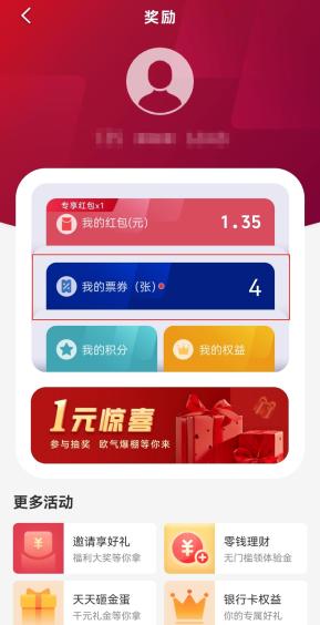 三、已获得票券查看流程在银联云闪付APP内“我的”-“奖励”-“我的票券”查看获得票券详细信息。