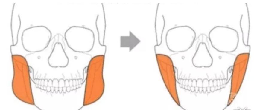 咬肌已经很发达了,平时就少锻炼,口香糖、牛肉干这些比较硬、韧的食物少吃。如果是骨头问题,就得找正颌医生来一个下颌角成形术,削骨头↓
