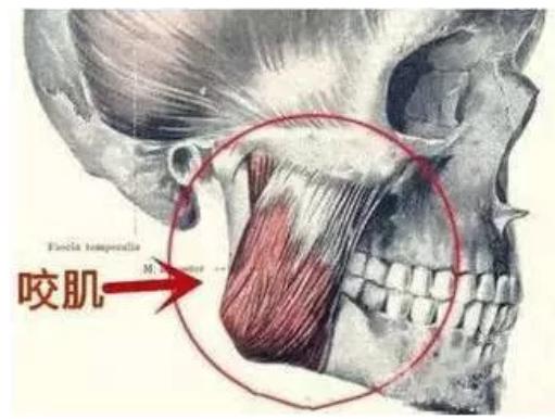 咬紧你的后槽牙,然后摸下图红圈这里,感受下有没有凸起的硬硬的肌肉块,硬的围越大,说明咬肌越大。当然打之前还是要让专业医生检查摸一下的。