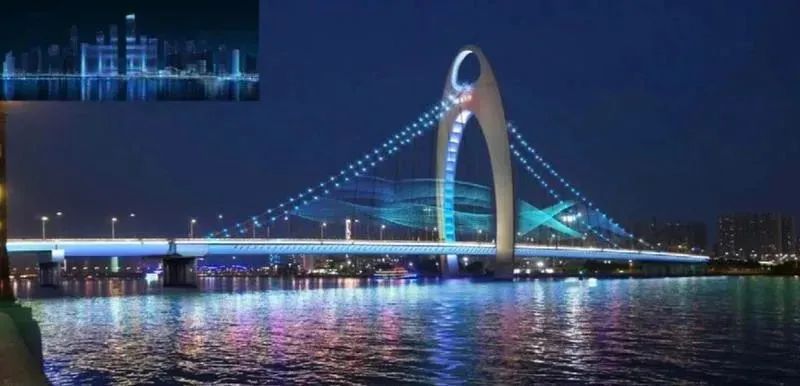 该工程为一江两岸桥梁景观照明提升的二期工程,相较一期工程将会增加更多激光照明、灯网网屏等设计,将猎德大桥打造成“江上网屏”。届时,桥梁景观将结合琶洲西区楼宇泛光照明以及西堤岸线、大沙头码头等景观照明建设、修复,满足珠江夜游独特的游船体验;市民在珠江两岸也可以欣赏到桥梁与天际线相互映照的璀璨夜景。