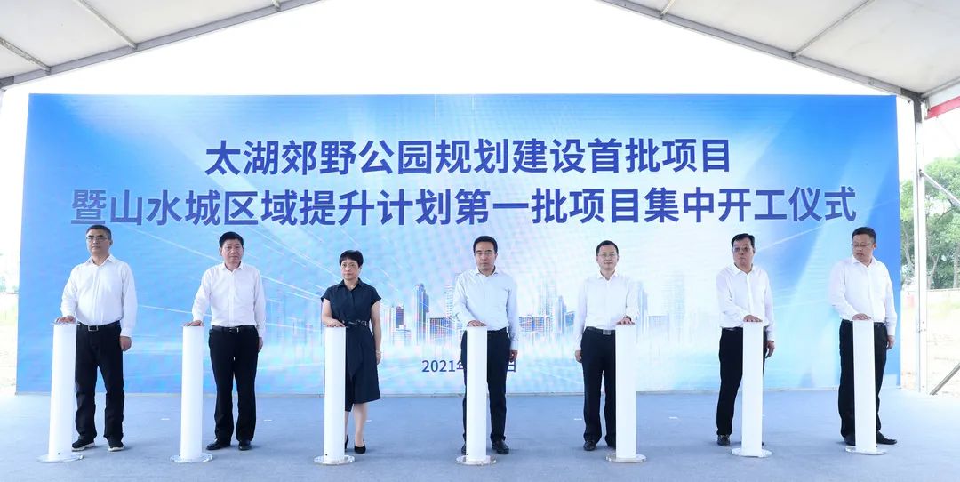 9月9日,太湖郊野公园规划建设首批项目暨山水城区域提升计划第一批项目集中开工,现场同步发布太湖郊野公园规划设计方案全球招标和LOGO标识全民征集公告。区委书记马良按下项目开工键,区长孙海东讲话,区领导赵虹路、刘洪兴、王伟伦、姚旭江、范校军参加活动。