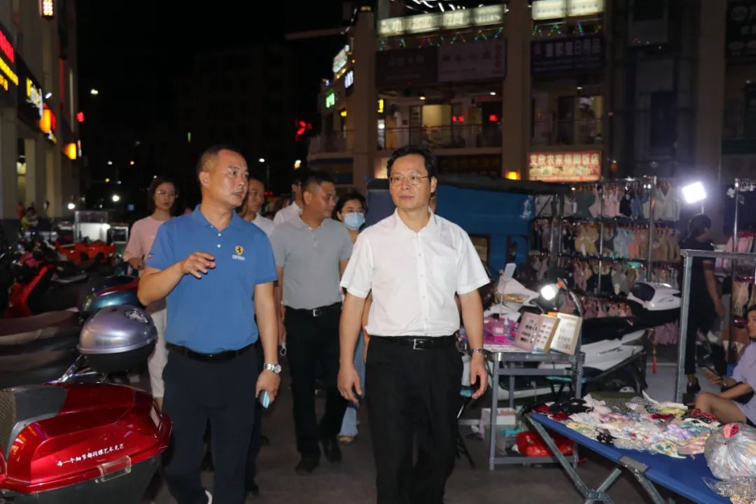 陈儒茂到华田商业广场夜市巡查“门前三包”、经营秩序等情况(黄海玲 摄)陈儒茂指出,今年,我县再一次获评“2021-2023年创建周期全国文明城市县级提名城市”,提振了士气、激励了斗志。“创文巩卫”工作的有效开展,是更好促进全县经济发展、提升广大市民生活质量的重要抓手。要以更高的标准、更严的要求、更有力的措施,着力巩固提升全县环境卫生,力争拿下“全国文明城市”这块金字招牌。