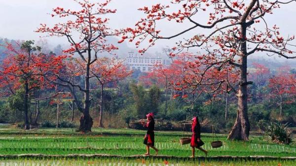 木棉花开遍黎乡,春色盎然