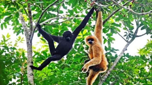 延绵苍翠的霸王岭风光无限霸王岭是海南省五大林区中保存最完好的热带原始森林,森林覆盖率达96.7%。霸王岭植物种类达2213种,其中列为国家重点保护和严禁采伐的珍稀植物有黄花梨、见血封喉木等27种。霸王岭气候温和,雨量充沛,空气负氧离子含量高,每立方厘米高达8万个。这里还是四大类人猿之一的黑冠长臂猿种群的最后栖息地,也是世界上唯一以长臂猿为保护对象的保护区,全世界仅存的35只黑冠长臂猿全部在霸王岭。黑冠长臂猿,俗称海南长臂猿,仅分布在海南省昌江县和白沙县交界的霸王岭林区,而就在20世纪末至21世纪初,海南长臂猿还广泛分布于海南中部的各县,20世纪40年代整个海南尚有2000只左右。50年代初期,海南在澄迈、屯昌以南的12个县都生活着黑长臂猿,总数达2000只左右。1960-1963年间在乐东县的尖锋岭和陵水县的吊罗山等地仍有不少,到了20世纪70年代末大部分地区都已绝迹,全岛仅在霸王岭、鹦哥岭和黎母岭等地残存着7-8个小的群体,总数只有30多只。而1980年霸王岭自然保护区成立的时候,仅存有7—8只左右了。经过10多年的保护工作,海南长臂猿的数量才有所增加,现有五个家庭群,总数超过30只,集中分布在霸王岭国家级自然保护区的核心区内。