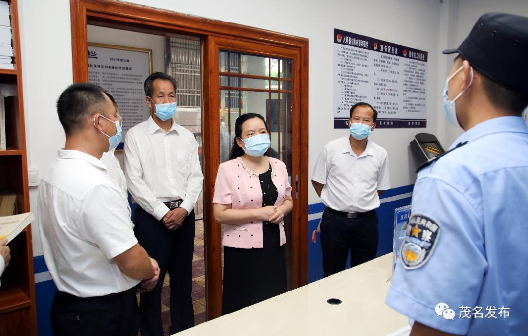 在高州市金山司法所,袁古洁详细了解普法宣传、人民调解、法律援助、社区矫正等工作开展情况。