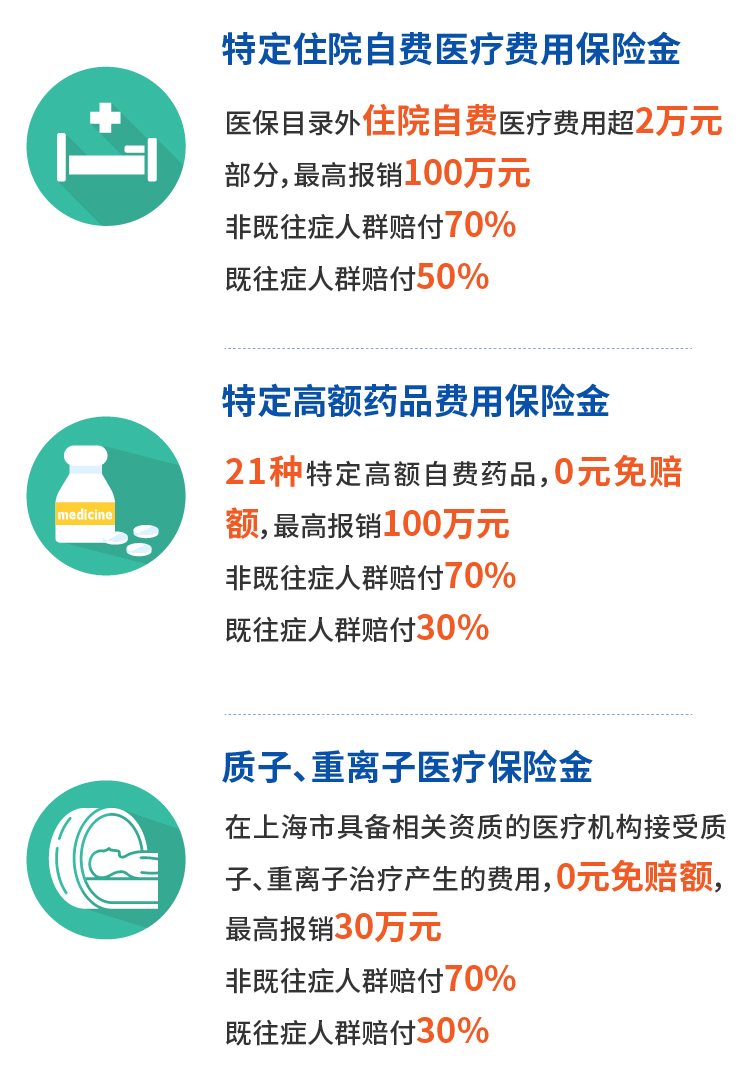 Q:我和老伴都买了“沪惠保”,具体能保点什么?既往症人群是如何定义的?三大保障,包括特定住院自费医疗费用保险金、特定高额药品费用保险金,以及质子、重离子医疗保险金。既往症人群是指投保日期前两年内登记上海市职工门诊大病或享受城乡居民大病待遇的人群。