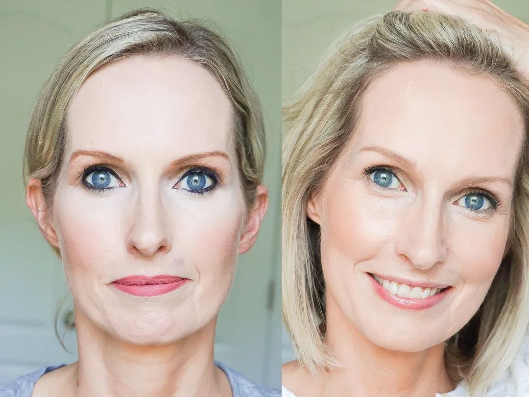 图左使用冷暗色调的彩妆,而右边换成更自然的珊瑚色系,是不是年轻了好多!掌握了道理,大家在以后化妆和观察学习妆面的时候就可以尝试举一反三了!