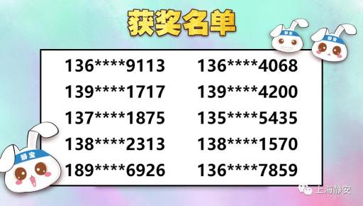 关注“上海静安”微信公众号,在后台回复“互动问题的答案+姓名+手机号码+收件地址”(为避免快递派送出现问题,请务必填写正确的联系电话和地址哦),静宝将按照收到的回复顺序,以15为倍数,随机抽取10名幸运粉丝,送出静宝为你定制的子母包一个。