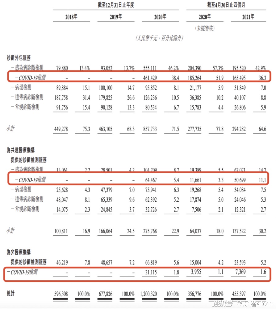 以诊断外包服务为主的云康,已经受到众多医疗机构的认可。弗若斯特沙利文报告显示,2020年云康集团为中国诊断外包服务市场的第五大提供商,覆盖了600多家医疗机构。报告期内来自诊断外包服务的收益分别占总收益的75.3%、68.3%、71.5%及64.6%,远高于其他业务。