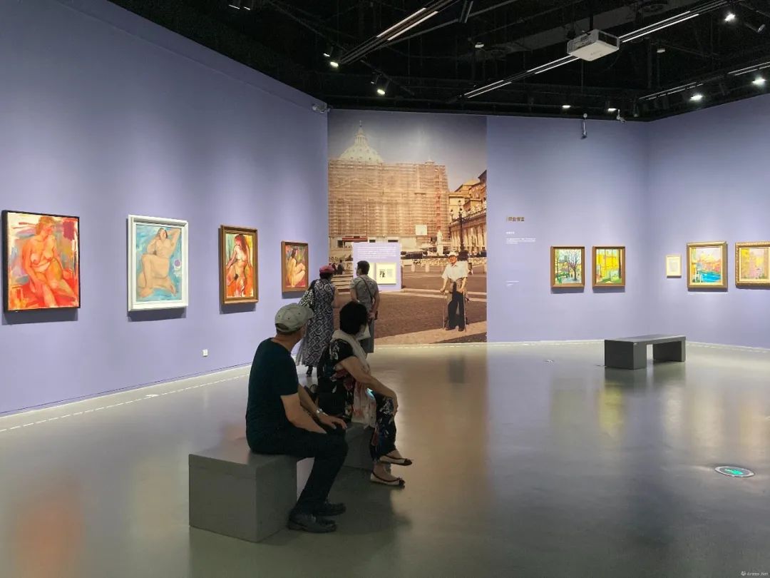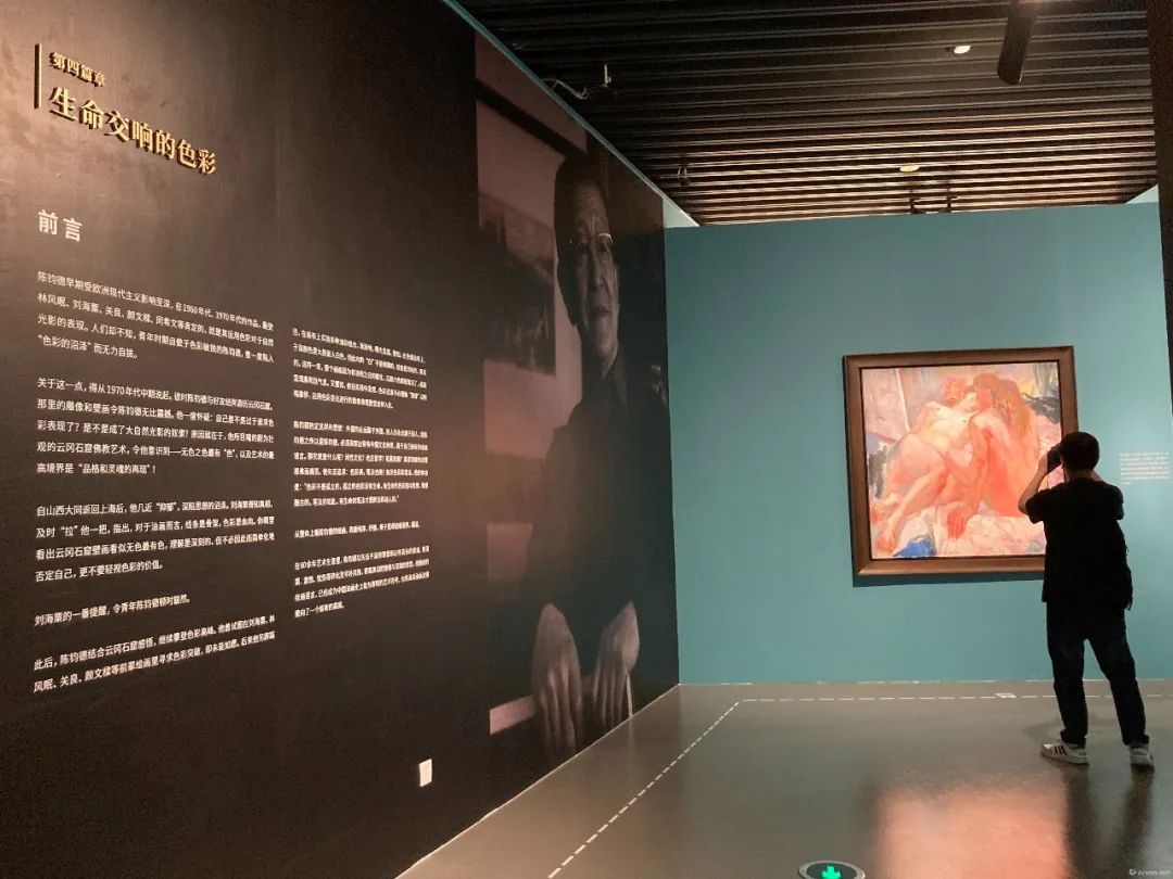 第四篇章“生命交响的色彩”现场此后,正好有一年,陈钧德的小妹有个画友叫罗兆莲,她自幼拜教于刘海粟的太太夏伊乔门下学习绘画。基于这一层关系,在罗兆莲的引荐下,陈钧德便结识了刘海粟,也因此陈钧德有机会与罗兆莲经常碰面,成就了烟缘,夫妻二人一个是刘海粟的“忘年交”,一个是夏伊乔的门徒,两家的关系更加亲近密切。此外,陈钧德还在一次刘海粟安排的活动中结识了关良。