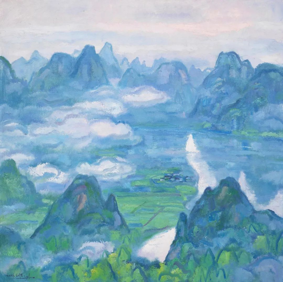 日映岚光轻锁翠 120×120cm 布面油画 2008值得一提的是,在教学过程中,陈钧德从未停止艺术探索,大胆涉足印象派、野兽派等“灰色地带”,既研究技法钻研理论,也思考美学意义以及艺术人生。他在教学论文里写道:“我似能体会当一个艺术家成功地将人世间的个人情感升华为艺术境界后那种’振奋‘的心情”。“艺术贵于独到。而欲独到则非求助于生活不可,并以造化为师,自营伟业,自开途径险路,在艰苦的奋斗中不断逐渐认识自己,表现自我。唯有以造化为师者才是强者,才是能战胜灾难而游至彼岸的人。”