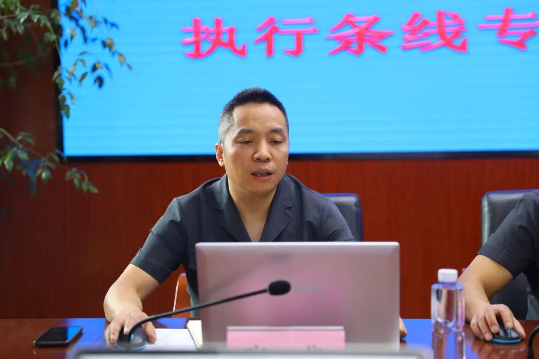 彭贵院长指出,在全市法院开展的执行条线专项整治是对队伍教育整顿的深化延伸,专项整治要深入落实中央市委部署要求和市高法院李永利院长在全市法院执行条线专项整治行动动员视频会上的讲话精神,效果上更加注重政治生态、纪律作风、素质能力、公信力的进一步优化提升,行动上更突出对执行条线的政治引领、问题整治、为民办实事、建章立制,落实上要更加坚持夯实责任、推进开门整顿、推动统筹协调、严管厚爱相结合,落实落细整治措施,改进优化执行工作,健全完善执行长效机制。彭贵院长强调: