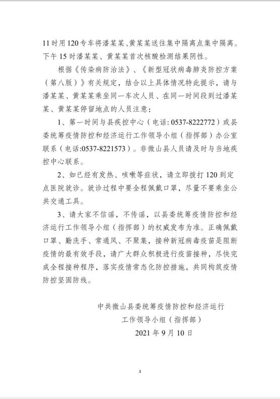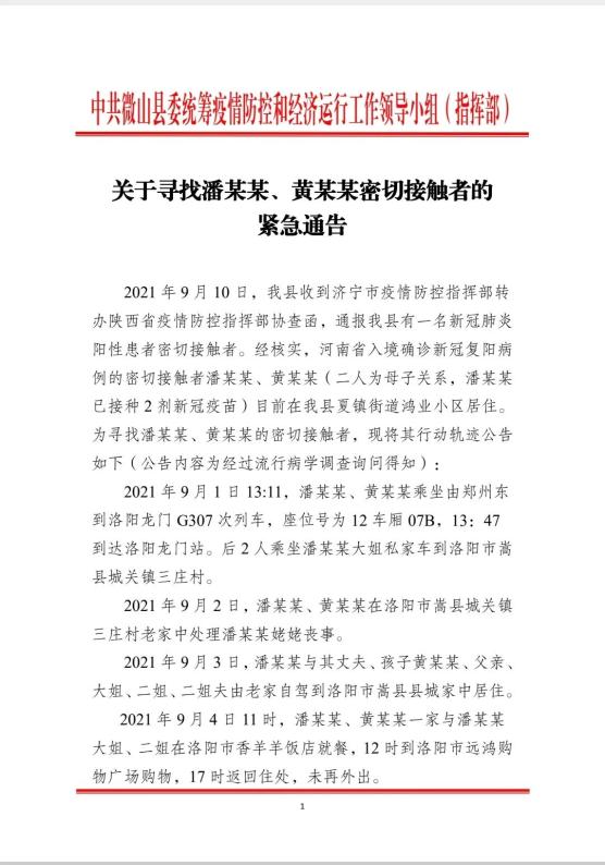 另悉,9月10日,济宁市微山县发布紧急通告,寻找2名密接者的密接者。