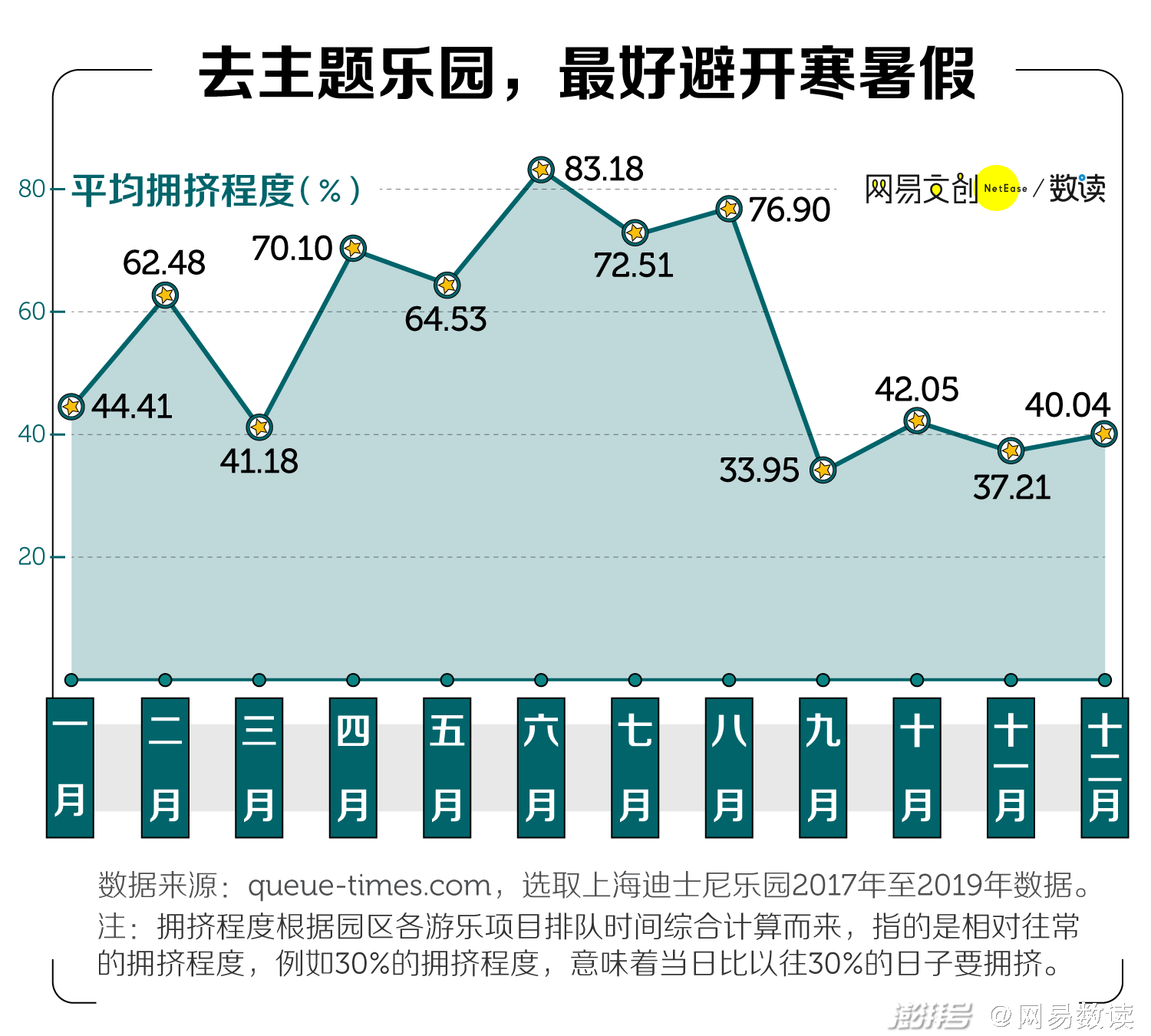9 月份开学后,上海迪士尼的拥挤程度明显开始下降,等到一二月份放寒假时,拥挤程度又开始上升。