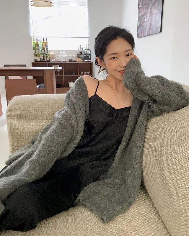 一般来说,纯色的开衫偏向百搭和温柔,简单却耐看。